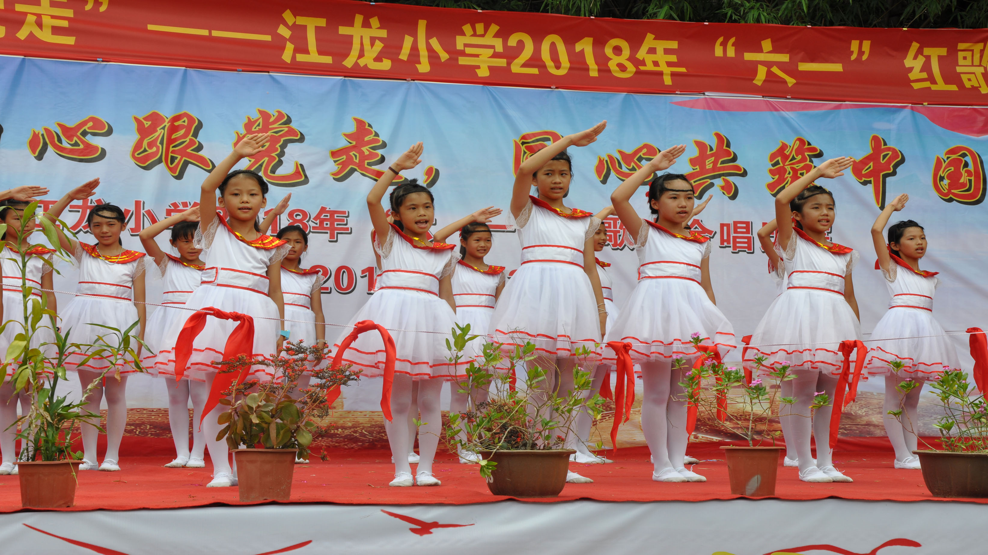 在歡樂的游園活動過后,活潑的旋律隨之響起,“六一紅歌大合唱”活動正式開始。伴隨者可愛的舞蹈,《童年》、《陪我長大》《明天會更好》、《少年先鋒隊隊歌》等一首首“紅歌”在同學們稚嫩的小嘴巴里唱出,天真無邪地歌頌青春和快樂。一雙雙水靈靈的小眼睛里透露出喜悅和幸福,一雙雙小手掌的鼓動起歡愉的氣氛,定格出一張紙快樂的童年剪影。