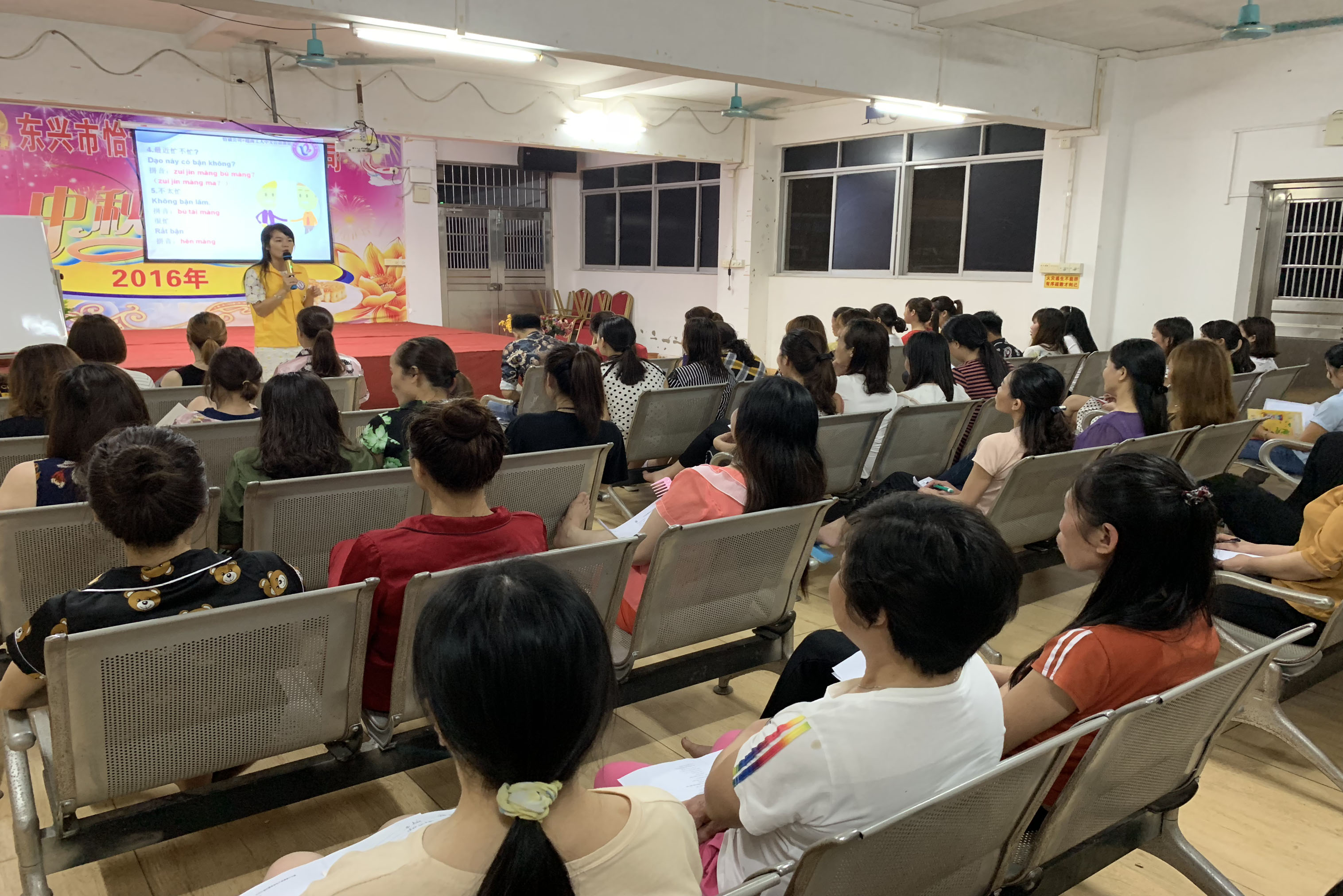 “中文課堂”語言培訓(xùn)活動受到越南籍員工熱烈歡迎,開班之際便收到近130名越南籍員工的報(bào)名申請。在怡誠食品黨支部,公司人事行政部的組織協(xié)調(diào)下,首期培訓(xùn)順利開展。北侖教育講師們運(yùn)用精美的課件,生動的語言,互動的教學(xué)手法讓大家在歡笑中熟悉中文日常交際用語,并引起了大部分員工學(xué)習(xí)中文的濃厚興趣。在首期課程舉辦完畢后,不少學(xué)員主動通過微信等方式聯(lián)系到授課老師,要求增加自身感興趣的教學(xué)內(nèi)容,讓授課老師倍感欣慰?!爸形恼n堂”為期一個月,期間主辦單位和授課講師將不斷根據(jù)學(xué)員反饋增加教學(xué)內(nèi)容,調(diào)整教學(xué)方式,相信整個課程會讓參與的學(xué)員收獲滿滿,學(xué)以致用。