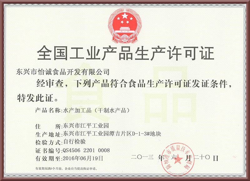 生產(chǎn)許可證(干制水產(chǎn)品)