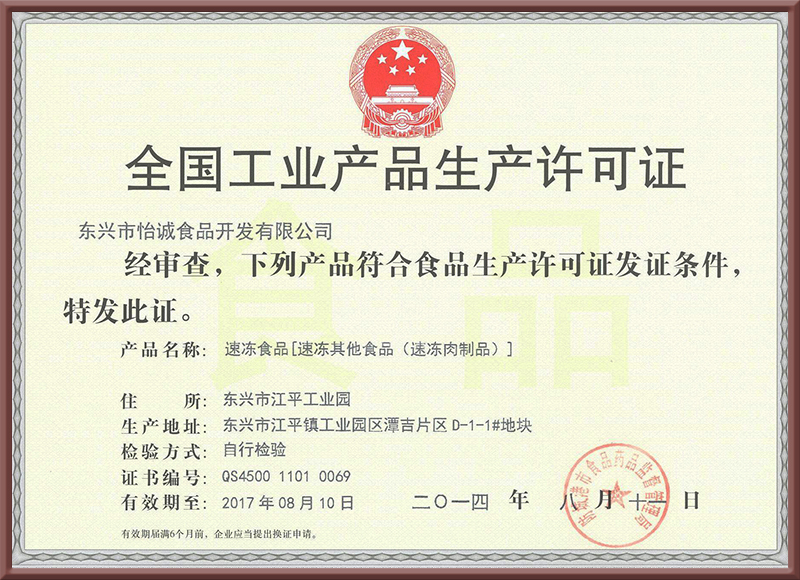 生產(chǎn)許可證(速凍產(chǎn)品)