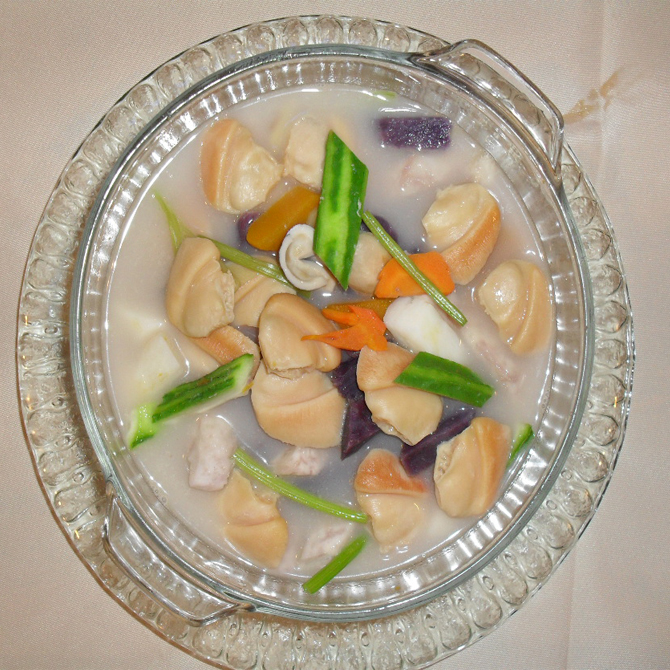 配料:海洋王宮牌太平貝罐頭、絲瓜、香芋、山藥、紅蘿卜、紫薯