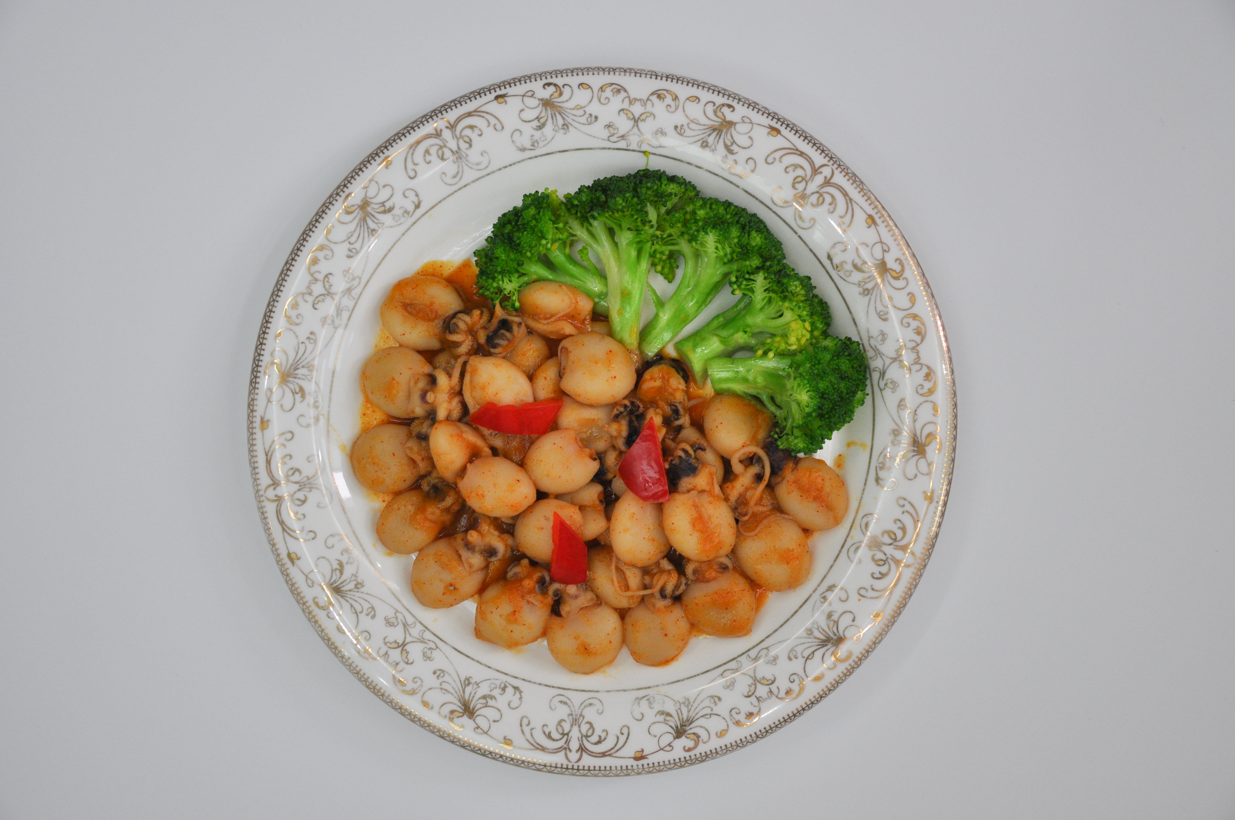 圓墨魚口感鮮脆爽口,肉汁滋潤豐富,通透清新,具有較高的營養(yǎng)價值。本產(chǎn)品選用北部灣海域捕撈的鮮活墨魚為原料,運用專業(yè)冷鏈物流運輸設(shè)備,把鮮墨魚迅速地運送到潔凈的生產(chǎn)車間內(nèi),由專人細心清洗,修剪,再以清湯溫和灼煮,隨后加入到鮮辣稠軟的特制醬料內(nèi)調(diào)味。經(jīng)調(diào)煮的小墨魚在冷凍加工設(shè)備短時間的急速冷卻下,再次收縮成型同時將稠滑的醬汁充分地吸收在肉質(zhì)內(nèi),使加工后的墨魚條條水靈紅潤,魚肉辛脆爽辣,滑嫩晶瑩,醬汁綿密細膩,豐美如膏脂,滋味非常。產(chǎn)品用途廣泛,食用方便快捷,既可解凍后作為冷盤食用,又可加熱調(diào)煮各式菜肴,風味別致。