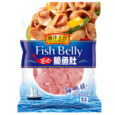巴沙魚是東南亞江河流域著名的優(yōu)質(zhì)淡水魚類,其肉質(zhì)潔白細(xì)嫩,汁液鮮甜清美,營養(yǎng)豐富,且不具有間肌魚刺,便于加工食用,長期以來受到各地人們的廣泛喜愛,其中巴沙魚內(nèi)的魚肚更是一種具有獨(dú)特風(fēng)味的水產(chǎn)珍品。本產(chǎn)品選用純凈河域捕撈的鮮活巴沙魚為原材料,運(yùn)用專業(yè)冷鏈物流運(yùn)輸設(shè)備,將巴沙魚送到潔凈無菌的生產(chǎn)車間內(nèi),由專人精心切出體內(nèi)魚肚,選取魚肚中鮮脆的部分,反復(fù)修剪成薄片,多次清洗并浸泡純凈冰水以改善肉質(zhì),為求留下口感最滑膩動人的脆片。魚肚片隨后經(jīng)專用的流水生產(chǎn)線和平板速凍設(shè)備冷凍加工,期間部分肚片由于肉質(zhì)厚度不足,片狀不均勻而在急速冷凍后卷縮變形的,都被篩選舍棄,最終成品百里挑一。每片魚肚片加工過程都投入大量的人員精力和成本,可謂片片心意滿溢。產(chǎn)品色澤紅潤新鮮,口感爽彈軟嫩,甜滑多汁,肉質(zhì)清鮮味美,勁脆十足,解凍后烹調(diào)各式菜肴皆美味可口。